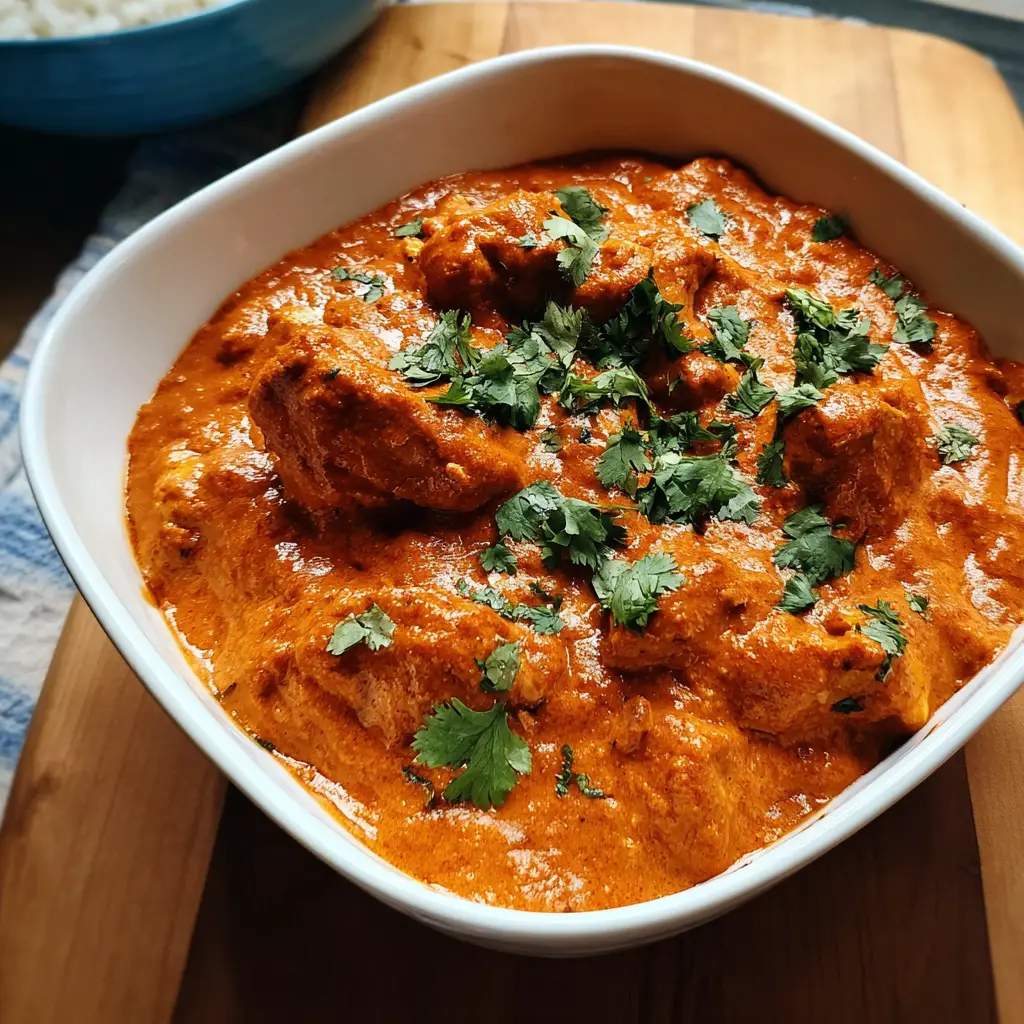 4 pounds premium chicken thighs, organic and free-range, cut into generous chunks 2 cups thick Greek yogurt, whole milk variety for optimal marination properties 8 cloves fresh garlic, pressed through microplane for intense aromatic release 4-inch piece fresh ginger root, peeled and grated to fine paste consistency 2 tablespoons garam masala, freshly ground from premium whole spice blend 1 tablespoon ground cumin, dry-roasted and ground for maximum nutty intensity 1 tablespoon ground coriander, freshly processed for bright, citrusy complexity 2 teaspoons turmeric powder, high-grade variety for golden color and earthiness 2 teaspoons Kashmiri chili powder, authentic variety for mild heat and vibrant color 1/4 cup ghee, clarified butter for traditional flavor and high-heat cooking 3 large yellow onions, finely minced for substantial sauce foundation 2 cans premium crushed tomatoes, 28-ounce San Marzano variety for optimal sweetness 1 cup heavy cream, European-style double cream for luxurious richness 3 tablespoons tomato paste, concentrated variety for umami enhancement 2 tablespoons brown sugar, for balance and depth amplification Himalayan pink salt and white pepper, for refined seasoning precision Fresh cilantro, mint, and curry leaves, for authentic aromatic garnish complexity