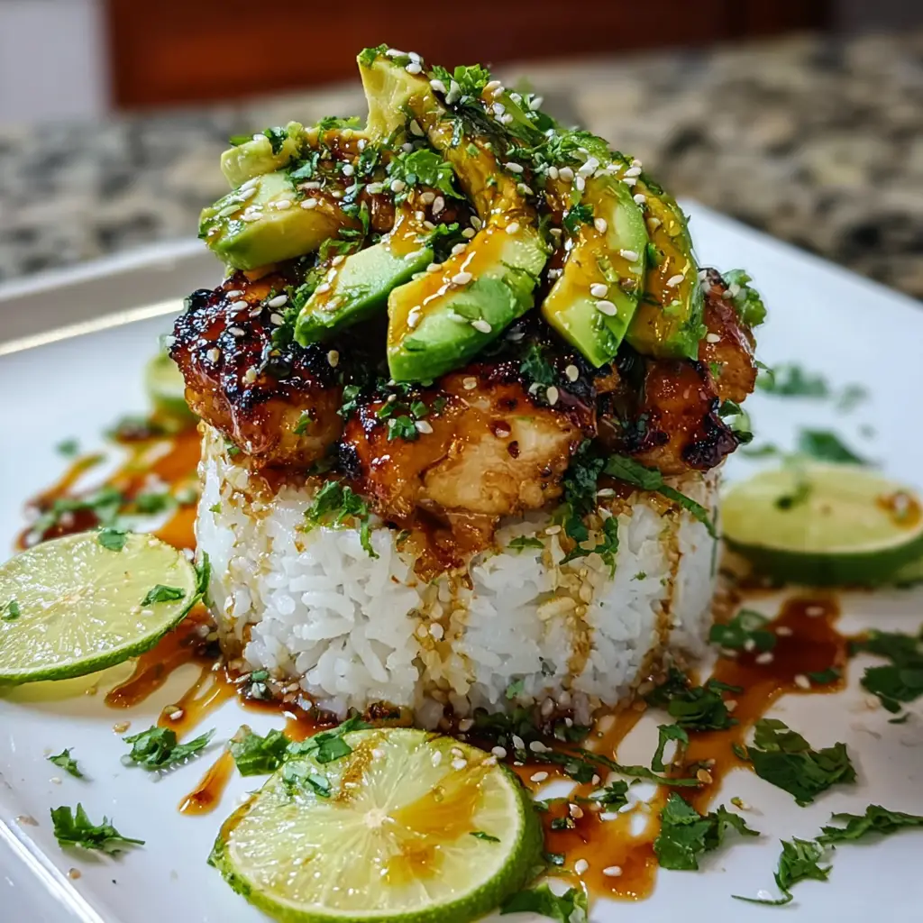 The Art of Creating Honey Lime Chicken Avocado Rice Stack