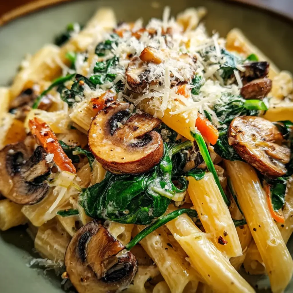 Experiment with different pasta shapes because penne, rigatoni, or orecchiette capture the sauce differently, creating unique eating experiences. Consider using whole wheat or chickpea pasta because these alternatives provide additional fiber and protein while maintaining compatibility with the mushroom and spinach combination.